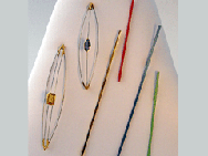 angelehnt an das gleichnamige Geduldsspiel. Farbig lackiertes Metall